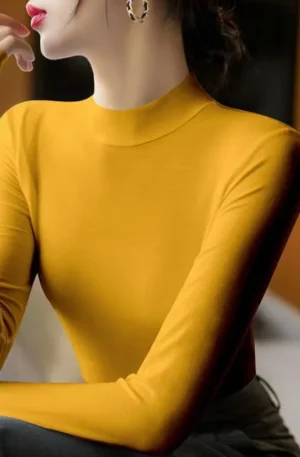Fashion Solid Undertale T-Shirt for Women High-neck Tight-fit Undershirt Long Sleeves Suitable for Autumn Winter Luxury T-shirt