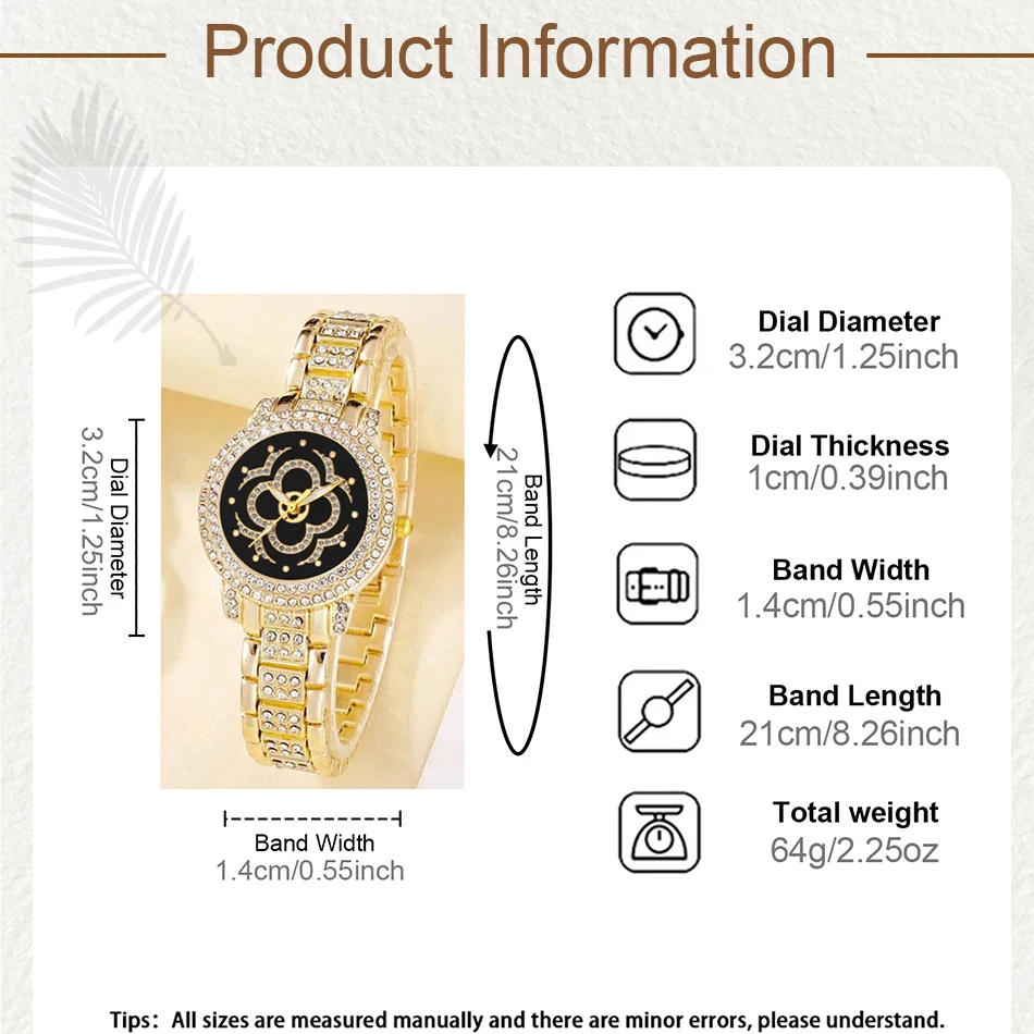 • Luxury Quartz Watch Set :This 7-piece set includes a quartz wristwatch, necklace, earrings, and bracelet, offering a luxurious and fashionable accessory set for any occasion.